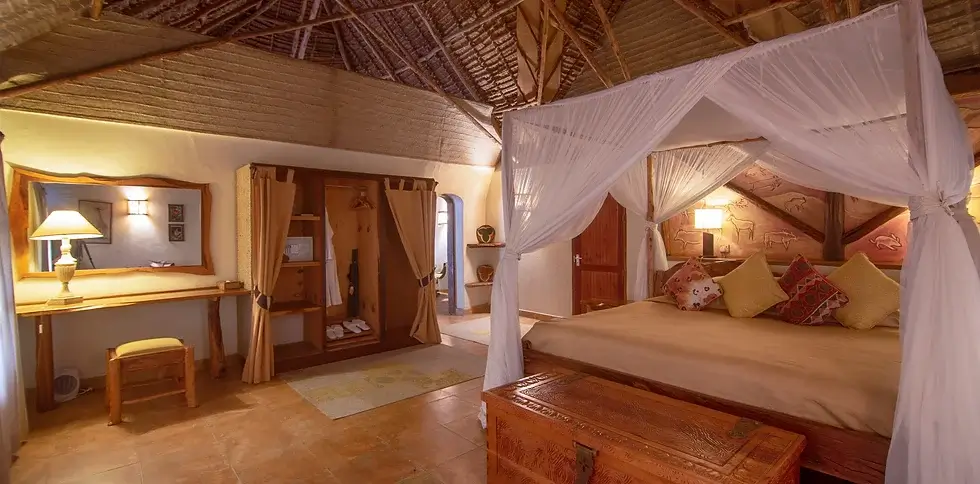 There are eight en suite individual and well-spaced luxurious bandas each with its own veranda and views of the Rift Valley escarpment and the Wildlife Sanctuary. Chui Lodge has 5 standard rooms and 3 deluxe rooms.