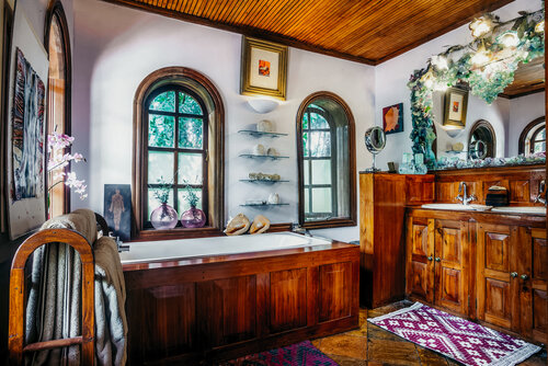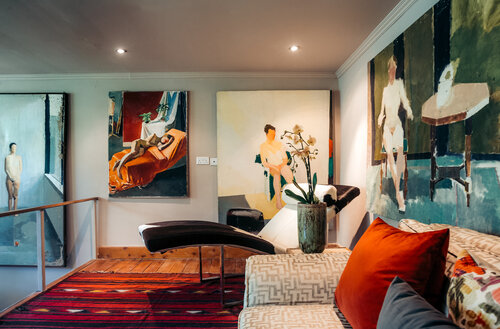 The quirky and beautifully designed house and studios are adorned with bright and unusual artworks.