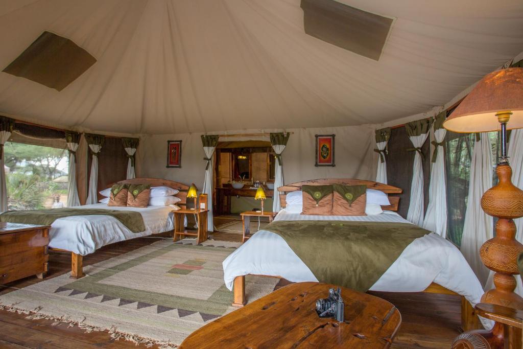The lounge and dining area is decorated with vibrant safari style, its soft intimate lighting assuring that this is the ultimate place to relax in between exciting game drives. Elephant, Monkeys, Impalas are amongst the camp’s many regular wild visitors, whilst Samburu National Reserve has a good number of lions and leopards and offers the opportunity to see many species endemic to northern Kenya.