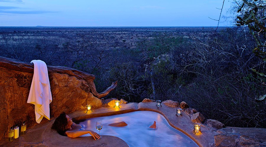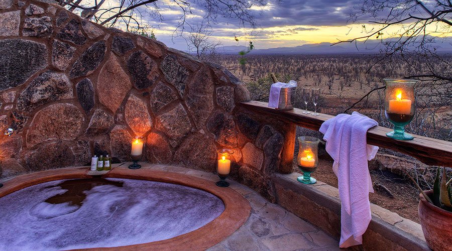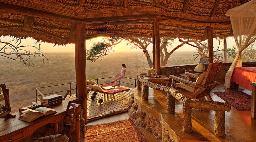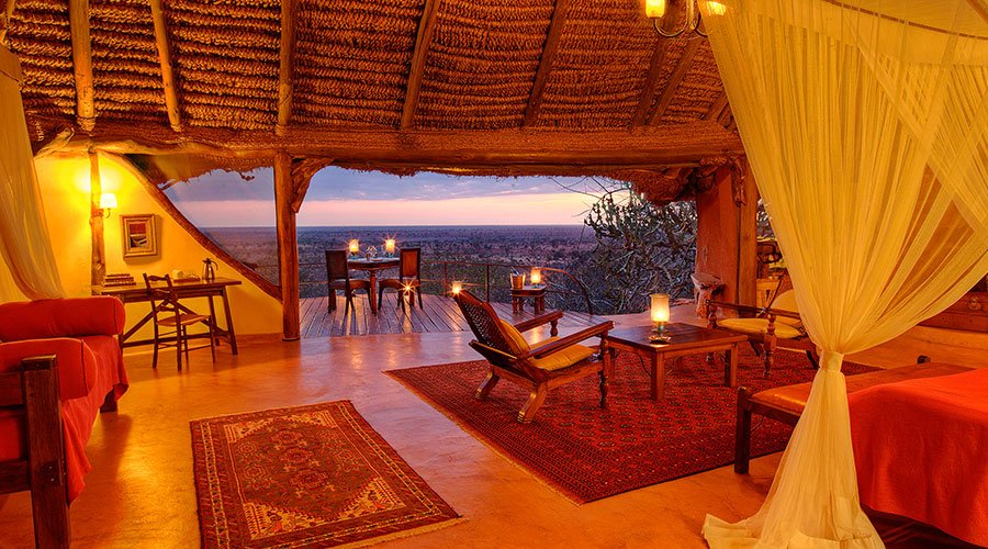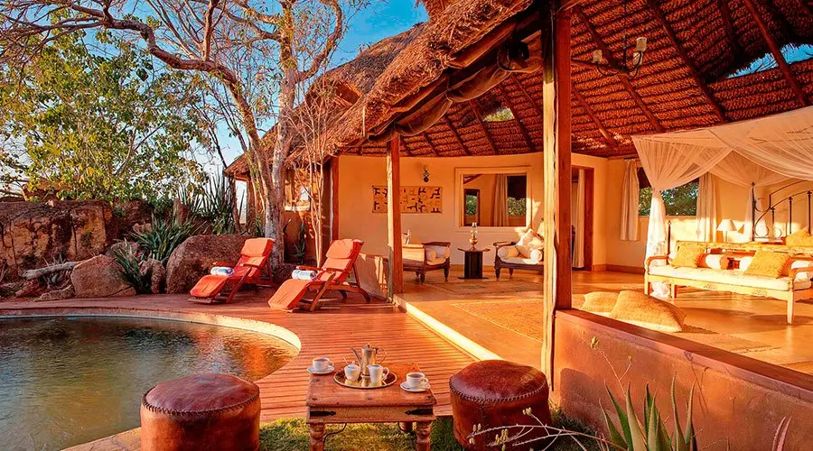 Unashamedly romantic, Elsa’s Kopje – situated above the site of George Adamson’s camp from where he raised Elsa the orphaned lioness – is sculpted into the rocky outcrop of Mughwango Hill. The spacious Elsa’s Kopje cottages, each with en suite bathroom and large open living room, have views from the private verandas across the adjacent plains.