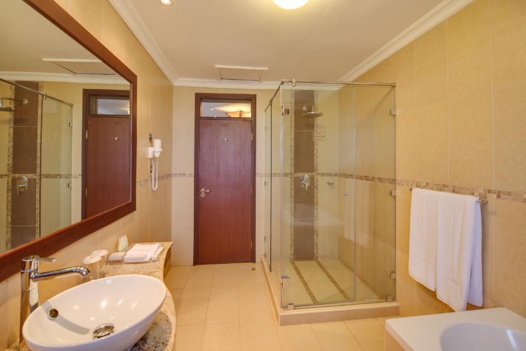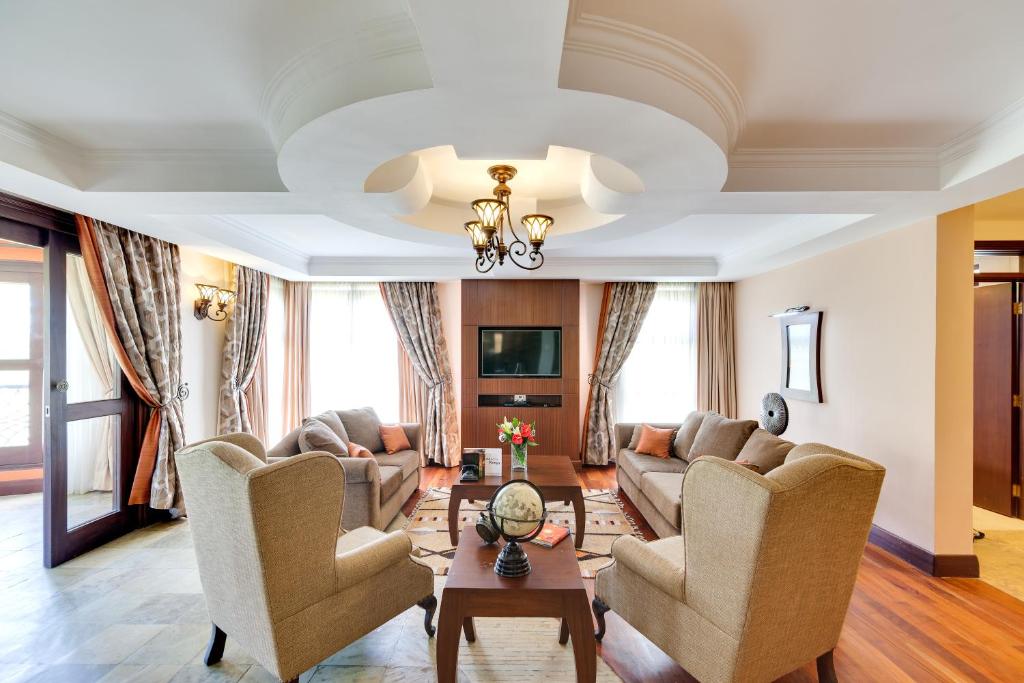 The African-inspired, elegant executive rooms are decorate with chic decor and provide you with a flat-screen TV, fan and tea-and-coffee-making facilities. The private bathrooms have a bath and a shower and are fitted with bathrobes.