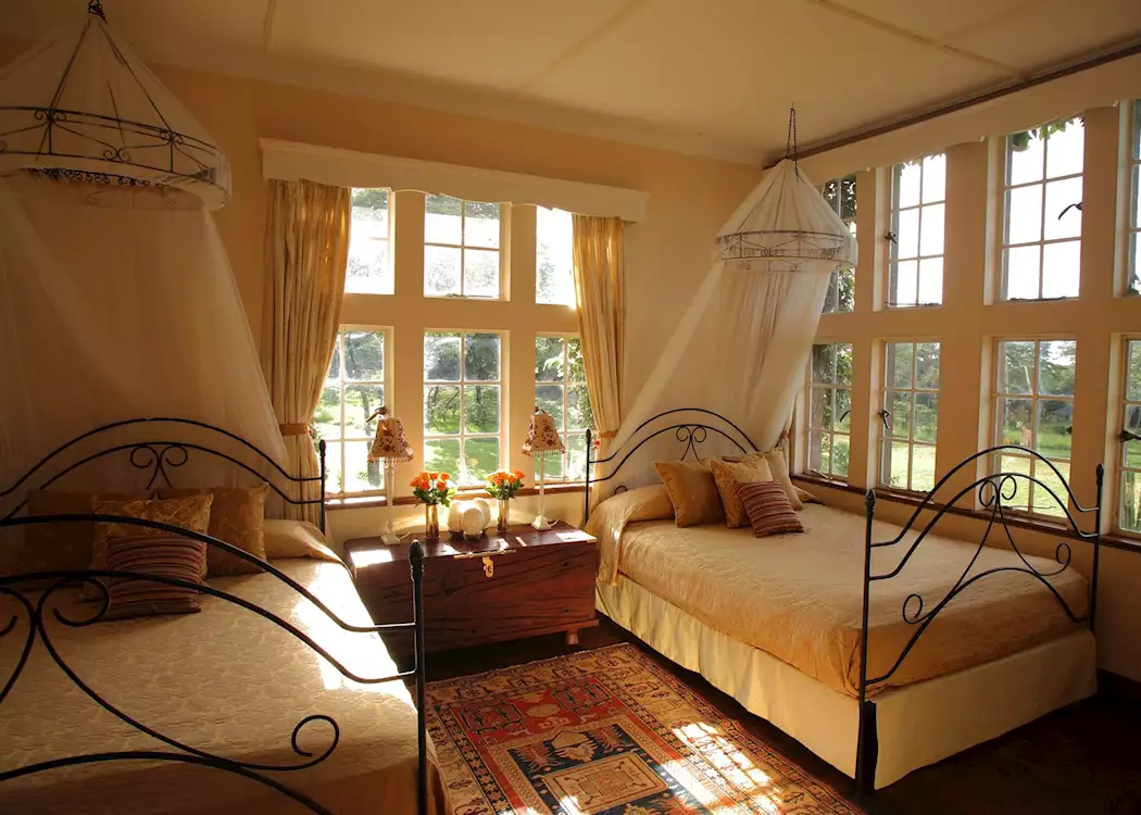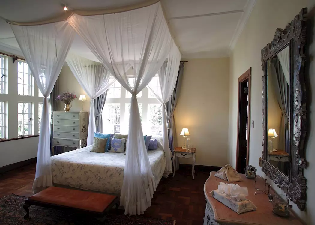 At Giraffe Manor if you leave the window open you will definitely end up with a giraffe peering at you as you wake up, or with it’s head in your salad bowl – feeding the giraffe through the windows and on the lawn is an absolute highlight. The house itself is decorated in old English style and is comfortable and elegant, with exceptional food.