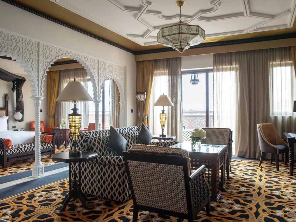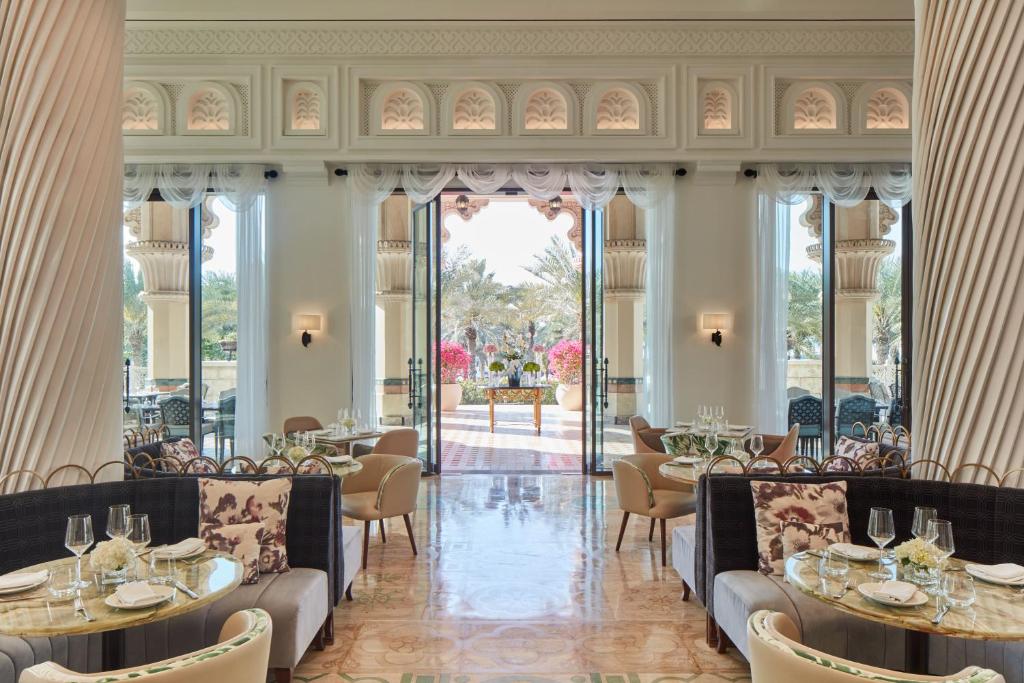 Guests relaxing on Jumeirah Al Qasr’s private, sandy beach are offered free fresh fruit and cool towels. Talise Spa features overwater treatment rooms. Other on-site amenities includes a large pool complex with dedicated children’s areas and a marble lobby lounge with palm trees.
