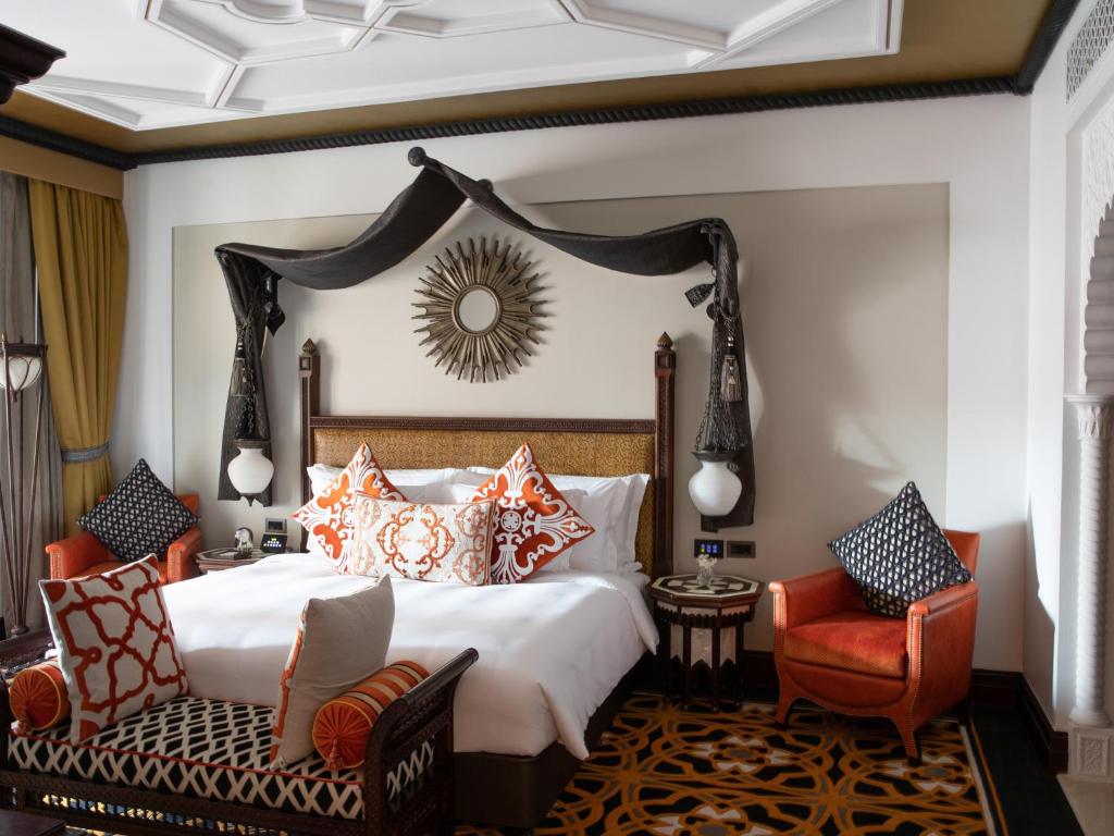 Jumeirah Al Qasr’s spacious rooms overlook the Arabian Gulf or hotel grounds. A private dressing area, walk-in rain shower and antique furnishings are standard in all rooms.