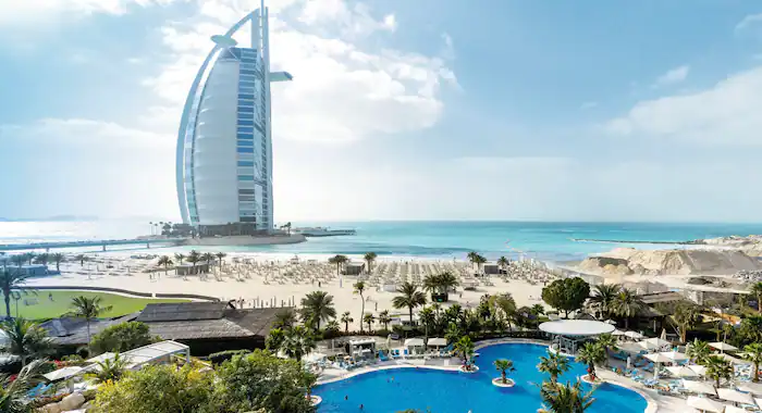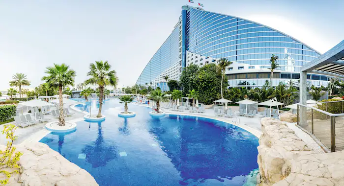 The Jumeirah Beach Hotel’s one of Dubai’s superstars, thanks to a private white-sand beach, an award-winning nightlife scene and uninterrupted views of the Arabian Gulf.