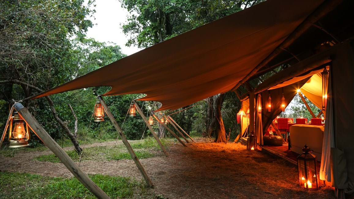 This small camp is so well hidden amidst the thick riverine forest trees, that you probably won’t see Mara Expedition Camp until you’ve actually entered it. Located in a small bend of the Ntiakitiak River, this small-scale safari camp consists of only five luxury safari tents shaded by a forest canopy.