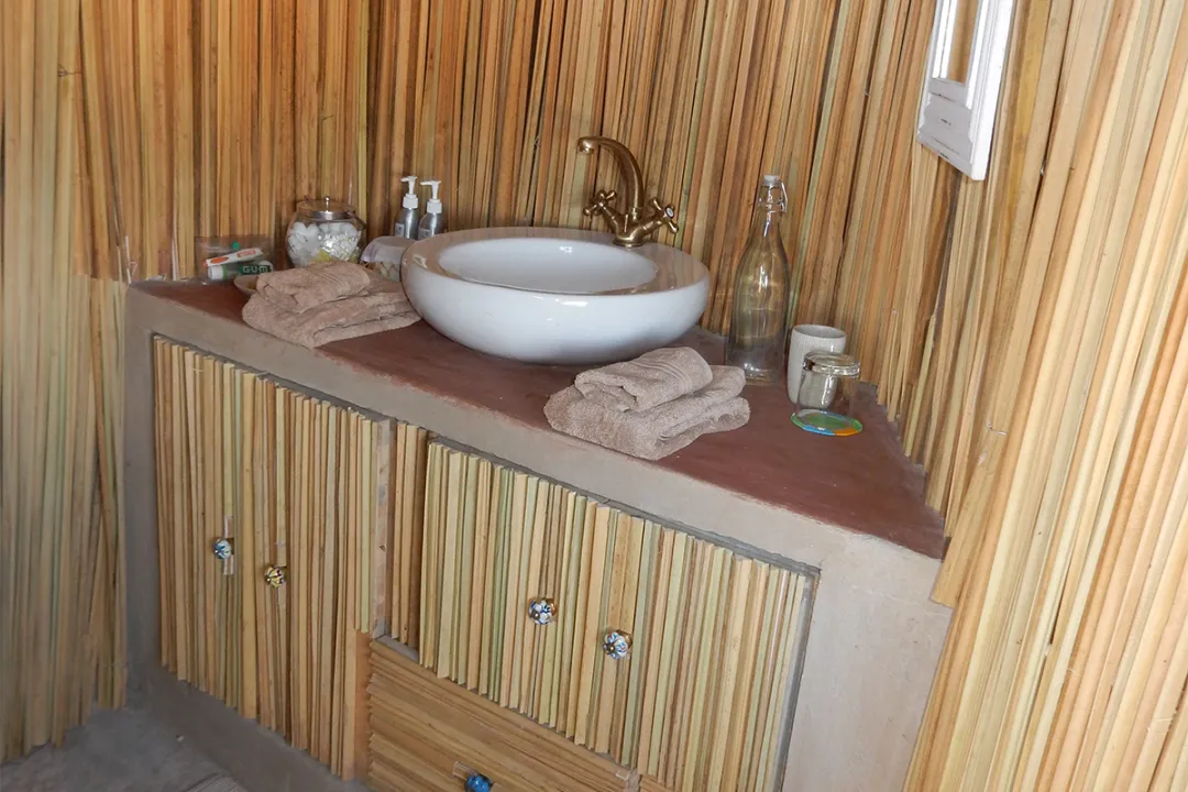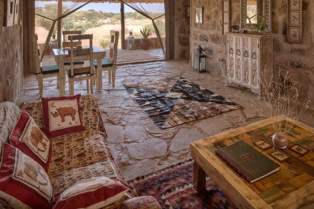 There are only 3 rooms within this camp. Banda one is the largest suite which can sleep up to 4 people – perfect for families or groups of friends. There is a large outside communal space and the only thing you will share is the bathroom. Banda two is the smaller and original Kauro Banda. with a natural stone outside shower and running water. There is a spacious sandy terrace out on the front of the Banda over looking the ‘lugga’ (dried up river bed). Finally Banda number 3 is the perfect accommodation for families. Two en suite rooms with their own bathrooms and flushing loos. Like the other two Bandas, this Banda has a large veranda with stunning views of the ‘lugga’ which is often frequented by wandering elephants, plenty of plains game and an array of birdlife.