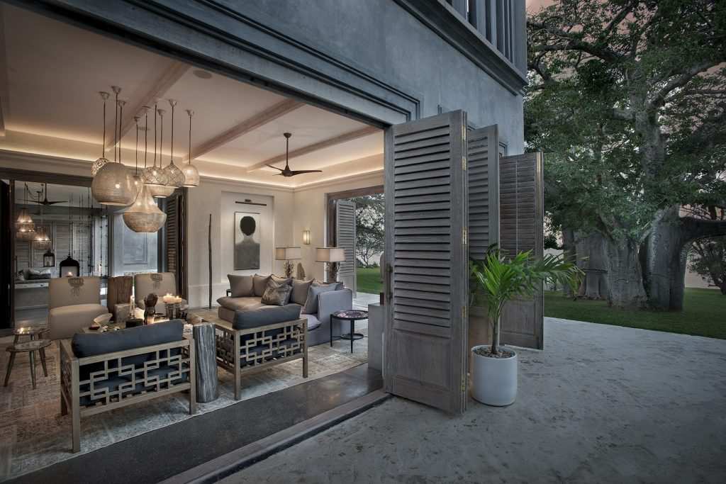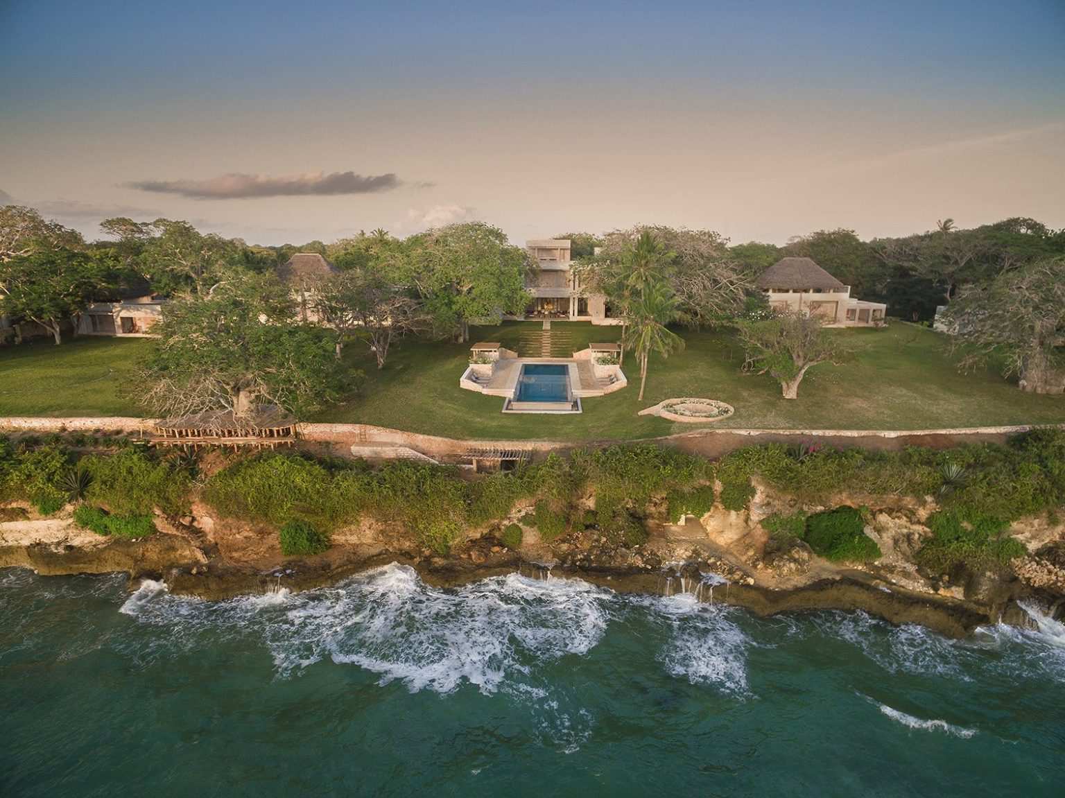 The main house is arranged around a beautiful open veranda that captures the gentle breeze at is rolls in across the surf with a sweeping view of the infinity pool and the sparkling ocean beyond framed by plump baobab trees. Downstairs find sprawling living areas, kitchens and dining areas, and from the atrium a grand staircase leads up to the master suite which stretches out across the entire first floor with its own sitting room, fabulous bathroom and two covered terraces connected by an elevated veranda.