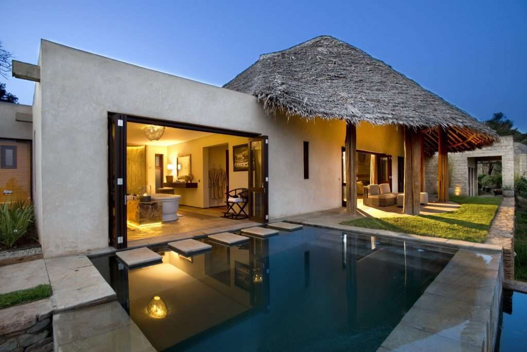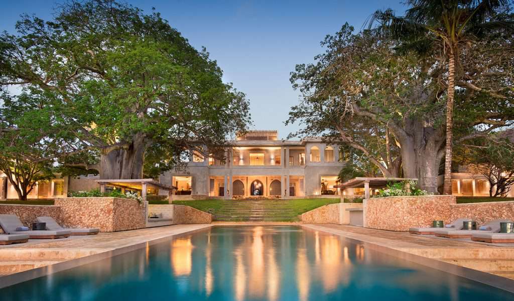 Situated on the north-facing lower slopes of Mount Kenya, with both mountain and grasslands for a view, Sirai House consists of a main house and 6 sleeping rooms. Set in terraced gardens, a self-consciously design orientated stone and thatch build, one that made fine use of artisanal expertise and of locally sourced materials, the main house includes a drawing room, pool, multiple seating areas, a bar, billiard room, library, dining room, gallery, cinema, boma and veranda.