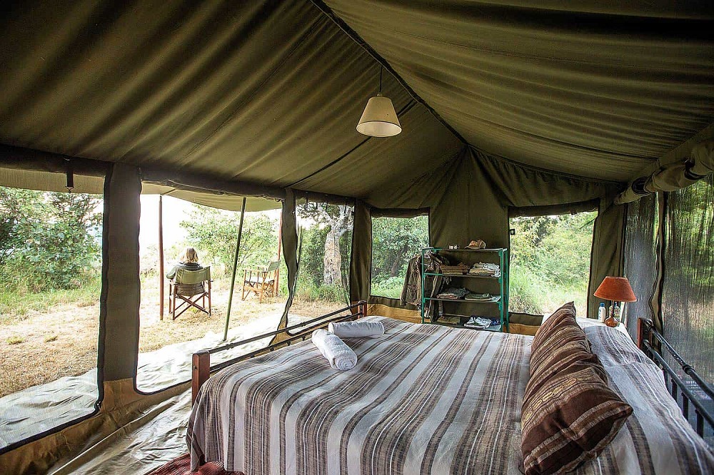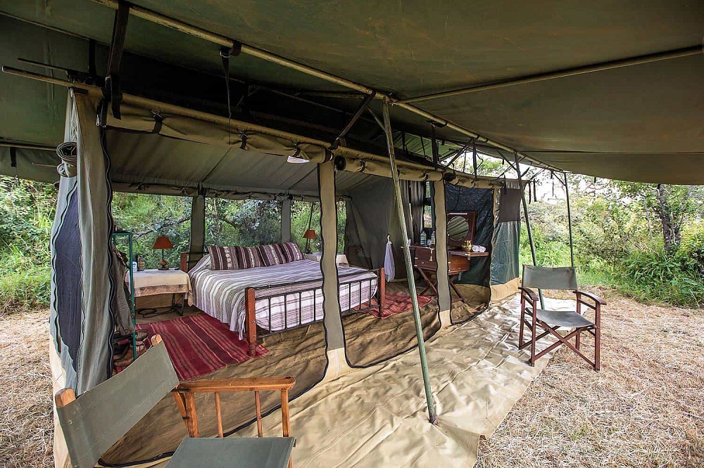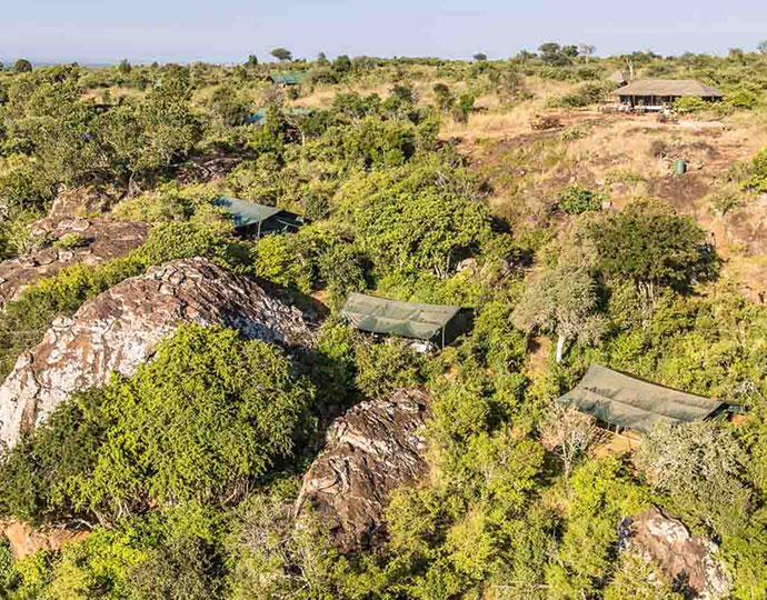 The tented suites are simple, yet stylish. Very comfortable beds, with adjoining bathroom and warm bucket showers adding to that traditional safari experience. Dining takes place in the main mess area, situated above the tented accommodation, with remarkable views looking out over the valley below.
