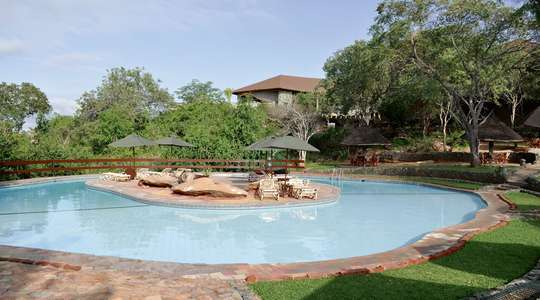 After enjoying a long leisurely game drive between herds of wild animals and along miles of Africa’s seemingly endless roads, you come over a slight rise and the lodge appears almost immediately below you.