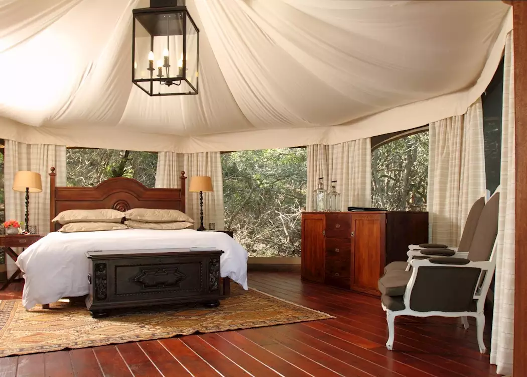 Thanda, meaning Zulu for ‘love’, is a 14,000 hectare Big Five private game reserve dotted with beautiful yellow fever trees. The intimate tented camp consists of 15 luxury tents (twins and doubles), each with a small viewing deck and en suite bathroom.